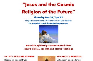What is the cosmic religion of the future? A free teleseminar for paid subscribers. Please join me for a very special presentation on Thursday…